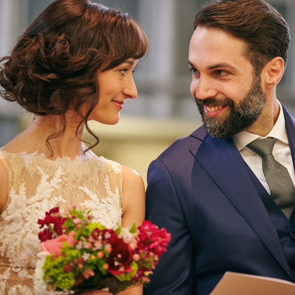 Eure Hoch­zeit ist eines der schöns­ten und wich­tigs­ten Ereig­nis­se in Eurem Leben. Braut und Bräu­ti­gam aber auch die Braut­jung­fern wer­den von uns für die­sen ein­zig­ar­ti­gen Tag in Sze­ne gesetzt. Ganz indi­vi­du­ell, emo­tio­nal und mit allen Raf­fi­nes­sen, die Du Dir den­ken kannst. Ver­traue unse­ren Exper­tin­nen-Hän­den und dem Gespür für Dei­ne Wün­sche und wich­ti­ge Details. Ein klei­ner Video-Clip beglei­tet das Hoch­zeits­paar Anne & Tho­mas beim Sty­ling für ihren ganz beson­de­ren gemein­sa­men Traum­tag. Schau mal rein.